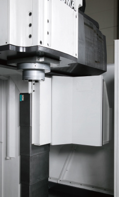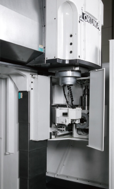 通過自動裝卸、ATC的主軸頭,可自動進行多面加工。連接在右立柱內側的AAC裝置可自動交換立頭和90°角度頭。