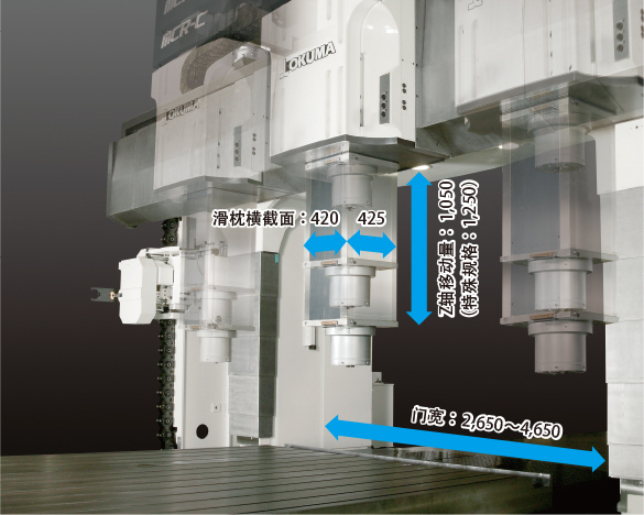 使用橫截面為420×425mm的高剛性滑枕