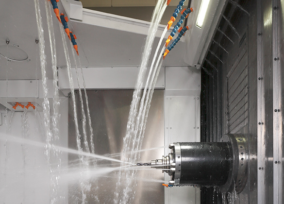 加強對加工室下部的清潔,通過大流量切削液和鉸鏈式排屑器將積聚的切屑順暢地排出機床外![]() |