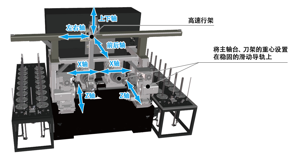 依靠高速行架,將生產節拍縮至更短 裝卸工件時,主軸臺移動至裝卸位置。任意刀架位置,行架可直接進入機床。 因手柄旋轉采用伺服驅動,以及所有動作的速度升級,使得4秒※完成工件裝卸成為現實。 ※不包含上側防護門開關時間。 4秒裝卸時間屬于實測值,根據運轉條件有可能超出4秒。