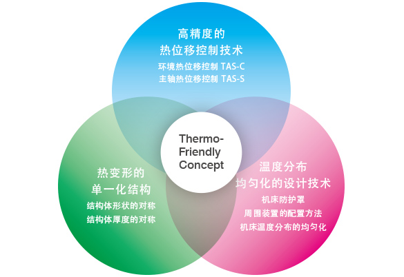 Thermo-Friendly Concept本著“接受溫度變化”的獨特的構思,使得用戶不必采取特殊措施,便能在一般的工廠環境中實現高精度加工。